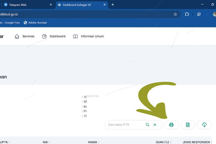 - Klik opsi “Unduh Kartu Semua PTK” untuk mengunduh kartu login dalam format PDF.
